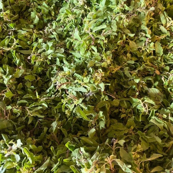 Tulsi string is meticulously crafted from freshly hand-picked Tulsi leaves. The process involves plucking the leaves at their peak freshness, ensuring that their natural oils and fragrance are preserved. Once collected, the leaves are skillfully strung together to create the Tulsi string.